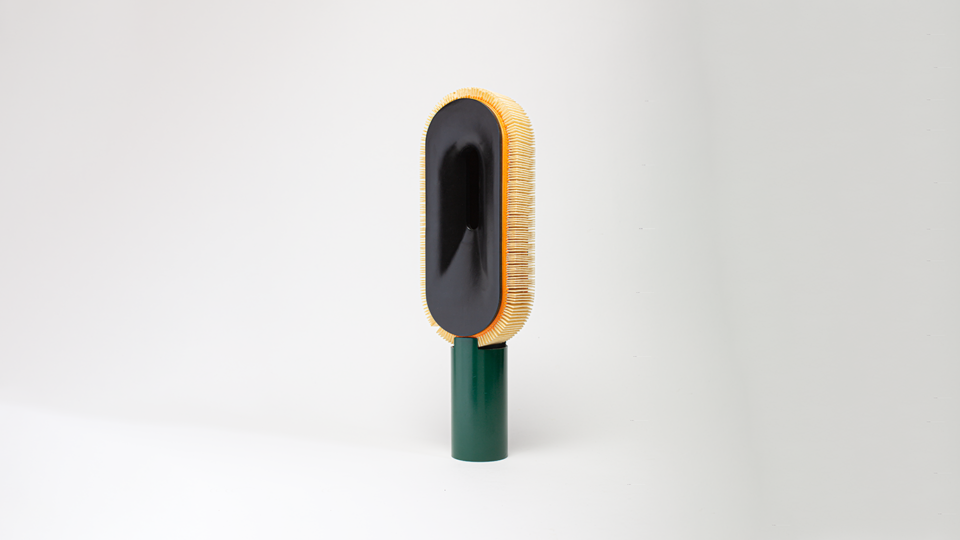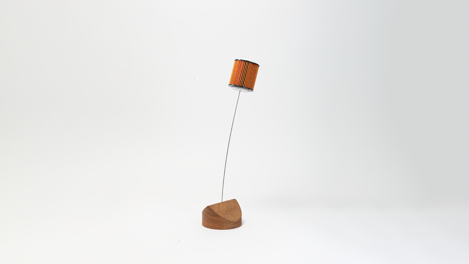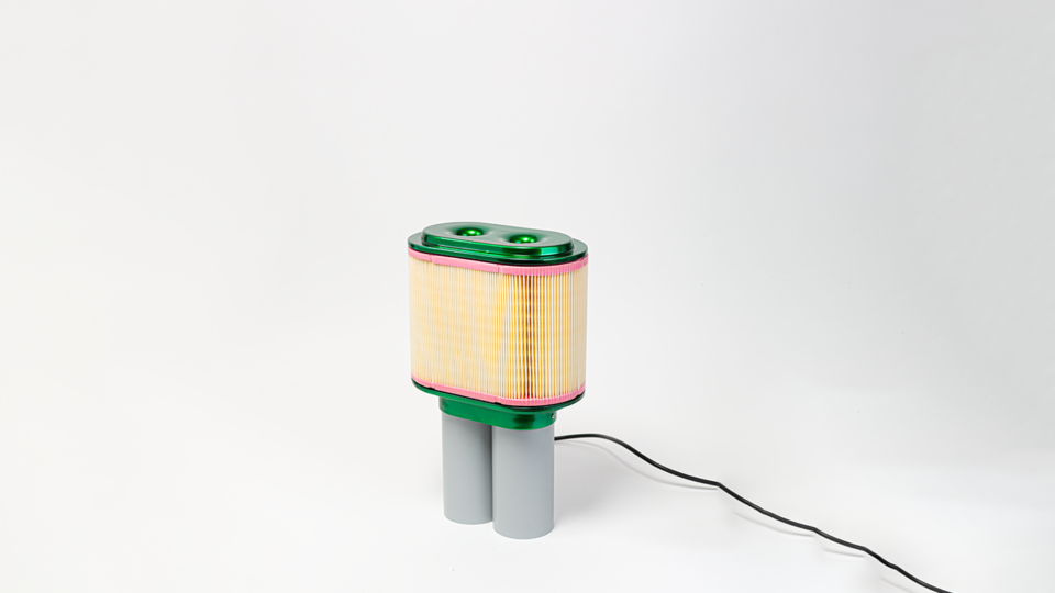 Ces acquisitions sont issues de Point de Corde, une série en constante évolution débutée par Dorian pour son projet de diplôme. Il s’agit de diffuseurs de parfums réalisés à partir de matériaux industriels issus de la récupération, tels des filtres à air automobiles, capables de rendre visible et perceptible la présence de la circulation de l’air dans les espaces intérieurs.